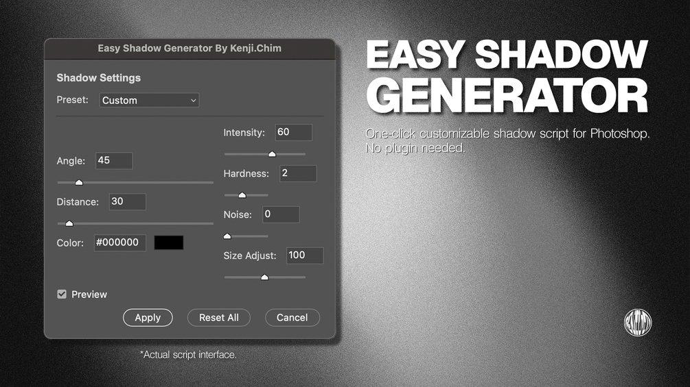 One-click customizable shadow script for Photoshop. No plugin needed.